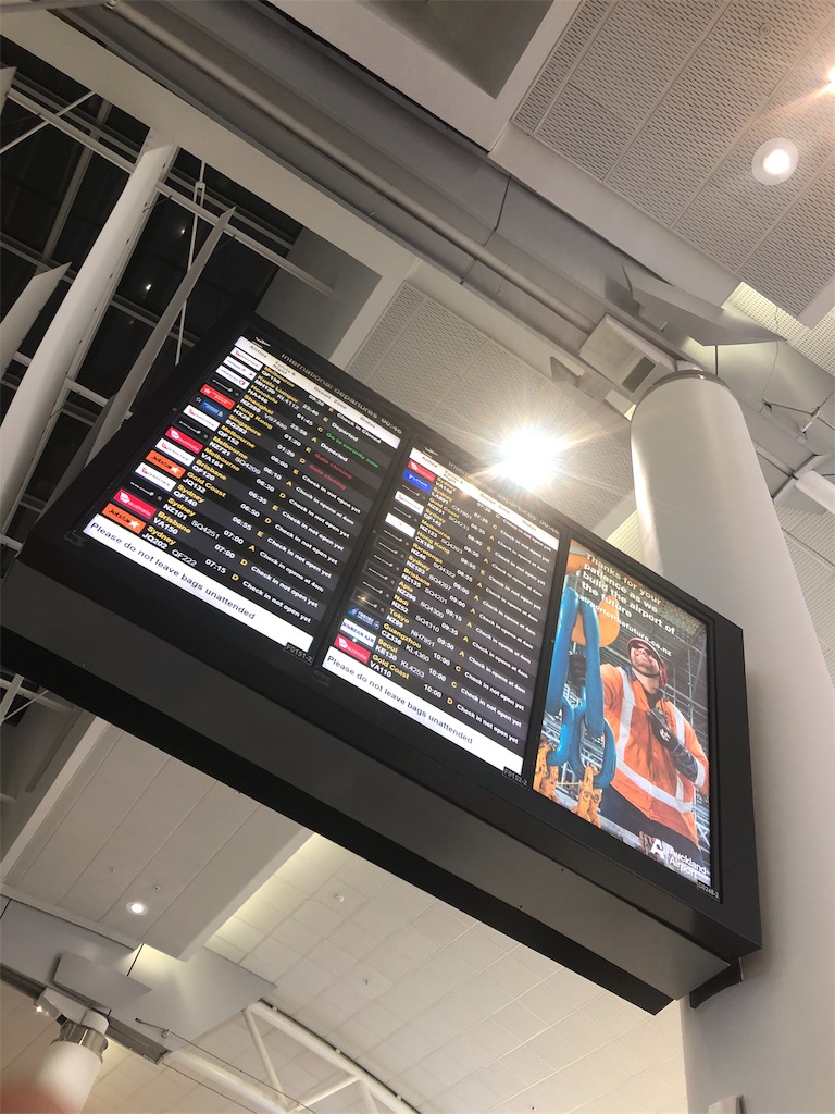 国内線は夜閉まるため、国際線の2階ロビーへ移動。