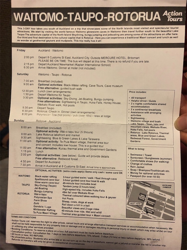 クイーンズタウンからオークランドへ戻り、週末を使ってワイトモ・タウポ・ロトルアを巡る2泊3日の旅に出ました。