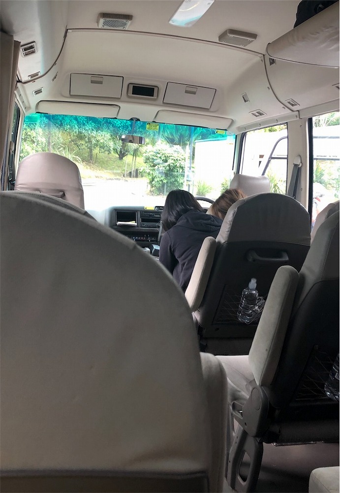 バスは20人ほどの小さめサイズで、乗客のほとんどが団体。