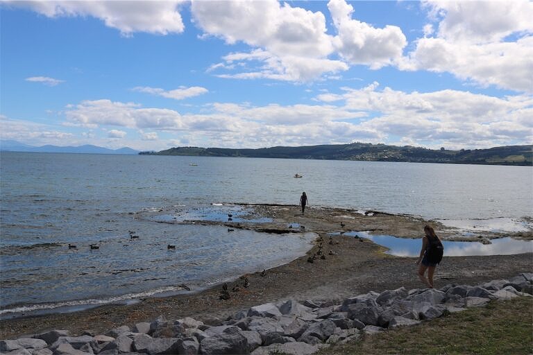 次は、タウポ湖のほとりへ。