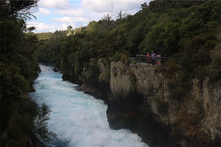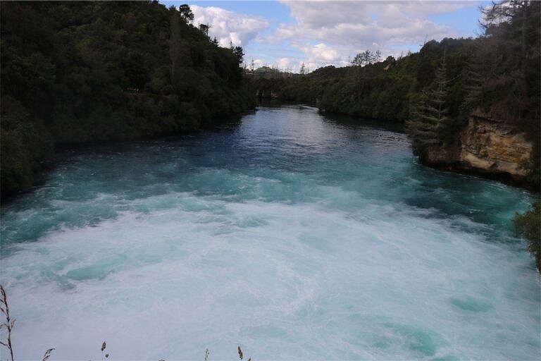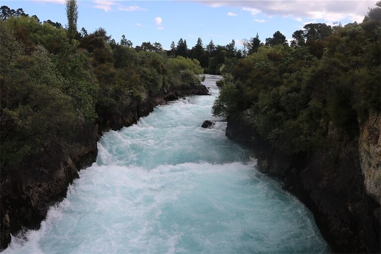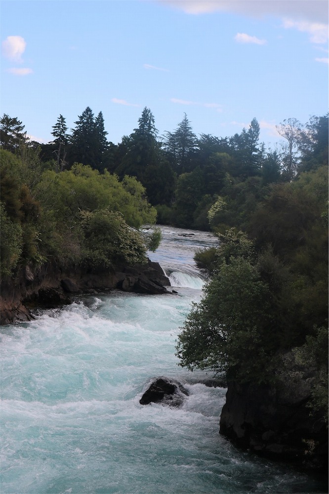 この川は、あの有名なフカ滝(Huka Falls)へと続いています。