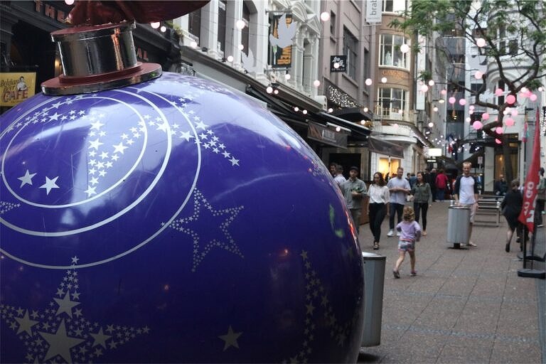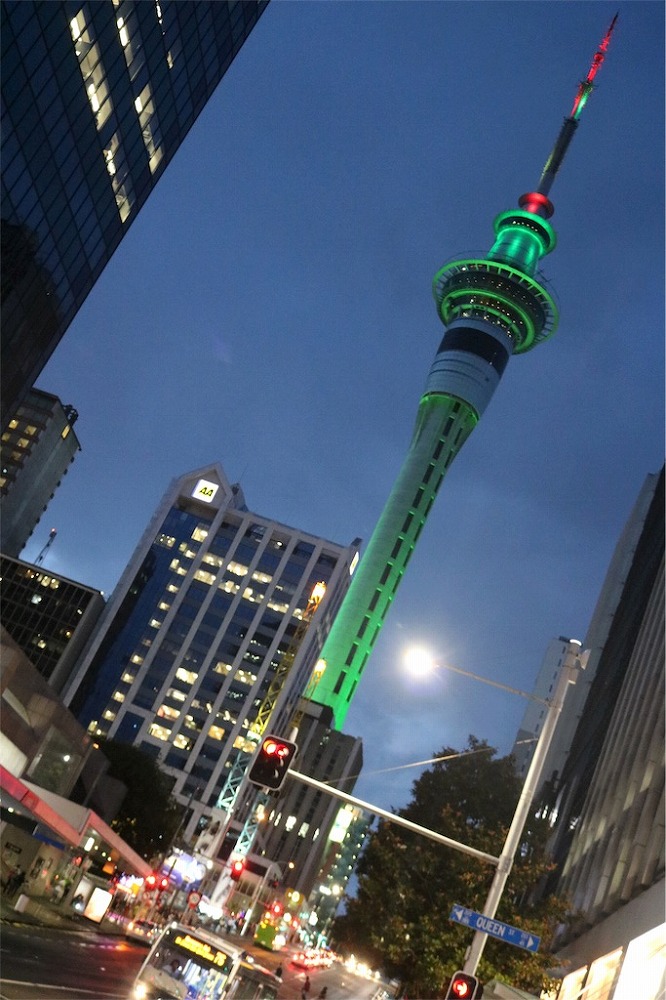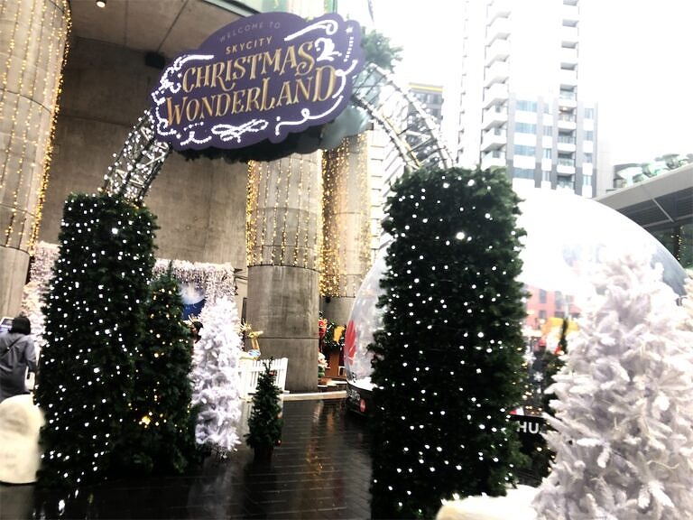 街の中心にそびえるスカイタワーはクリスマスカラーに染まり、町中では軽快な音楽が鳴り響いていました。