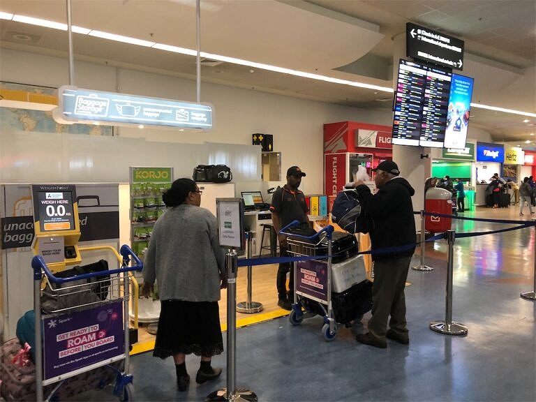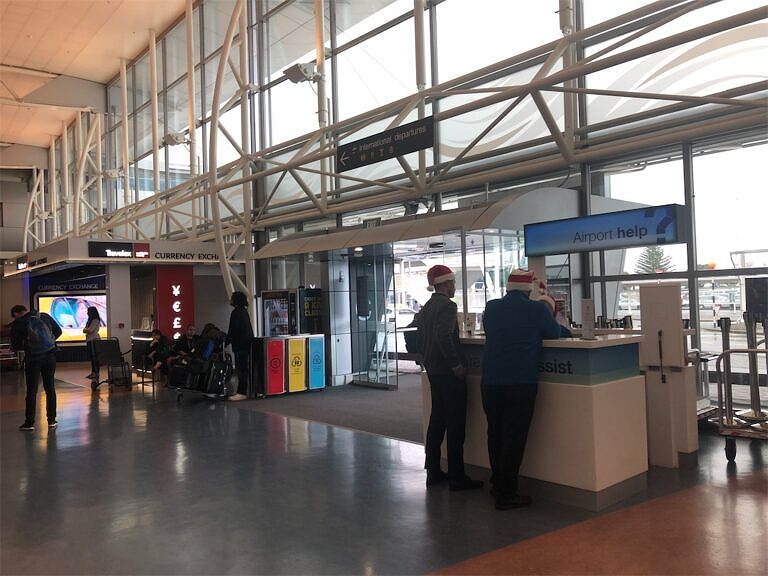 空港スタッフはサンタ帽をかぶり、クリスマスムードが漂っていました。