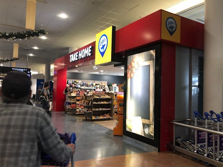 また、荷物をラップで包む「ラッピングサービス」や、コンビニ・カフェ・マクドナルドも営業しています。