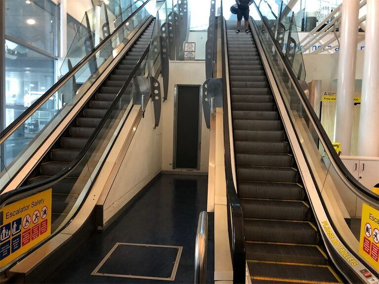 空港は2階建て構造で、1階が出発・到着ロビー、2階がショップや飲食店エリアです。
