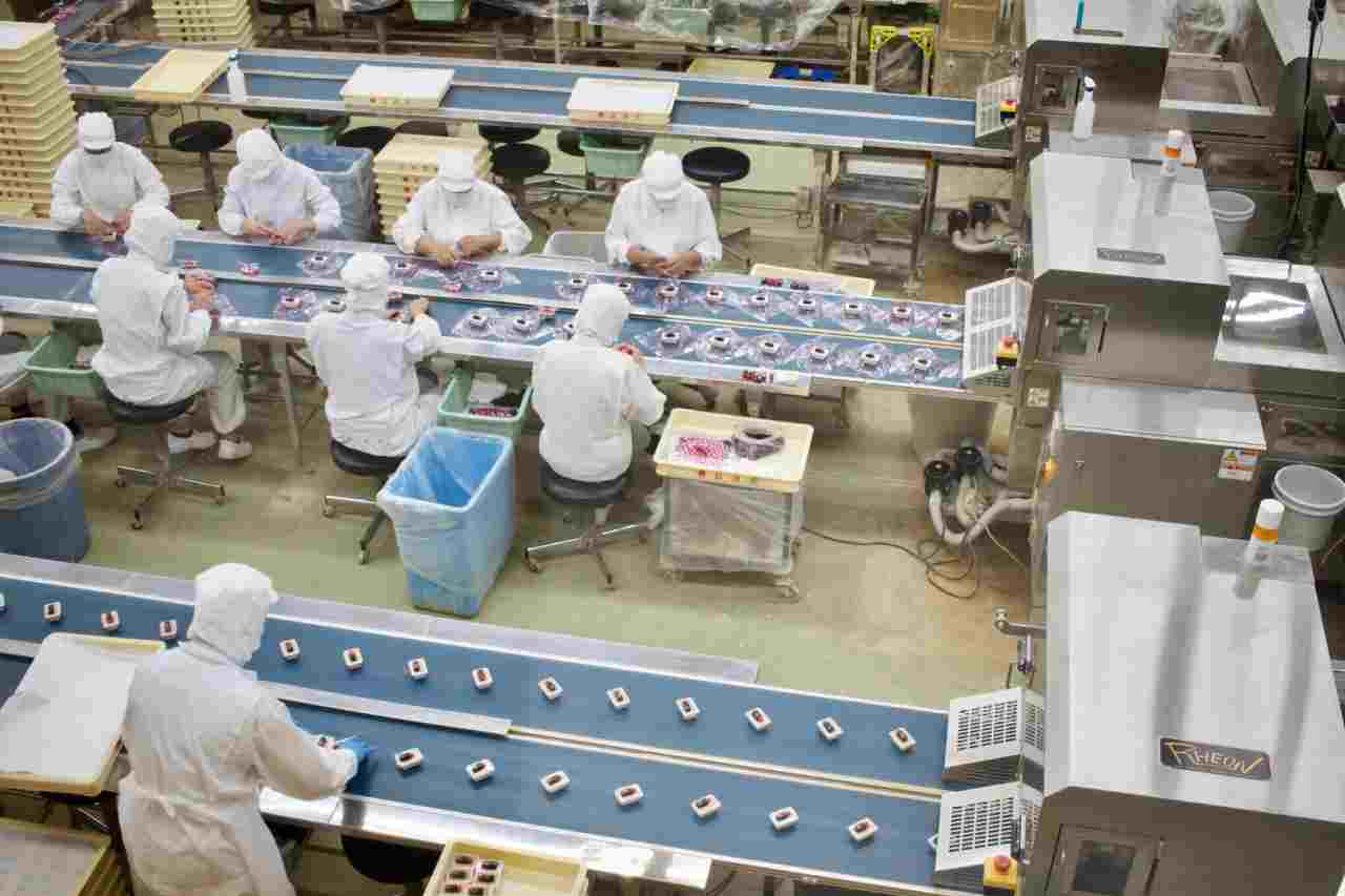 1日約10万個が作られており、仕上げの風呂敷包みは、なんとすべて人の手作業!