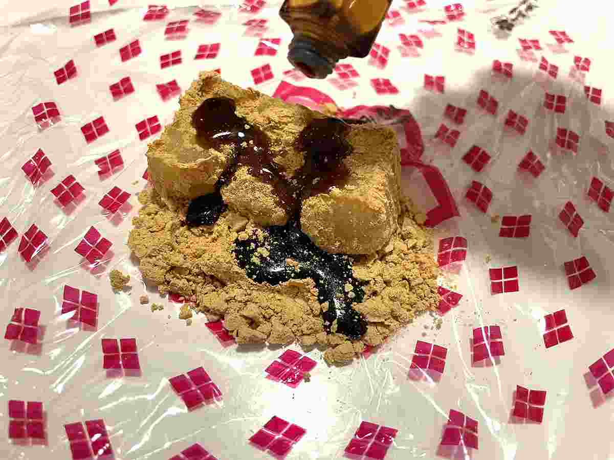 2.空いたスペースに黒蜜を入れる