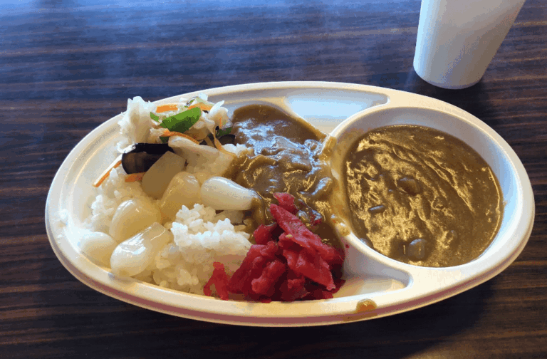 夕飯のカレーはおかわり自由で、がっつり食べたい人におすすめですよ。