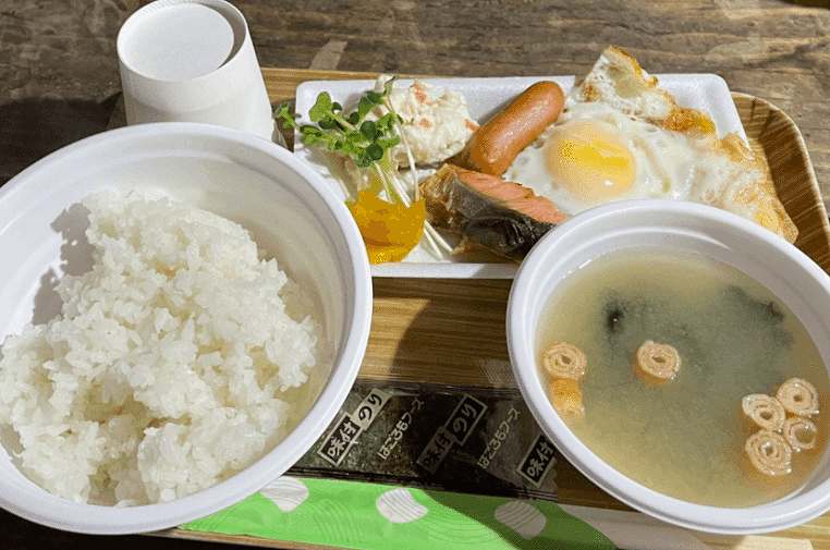 | 朝食内容 | ハムエッグ・味噌汁 |