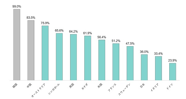 ・韓国のキャッシュレス決済比率は99.0%と、世界最高レベル。