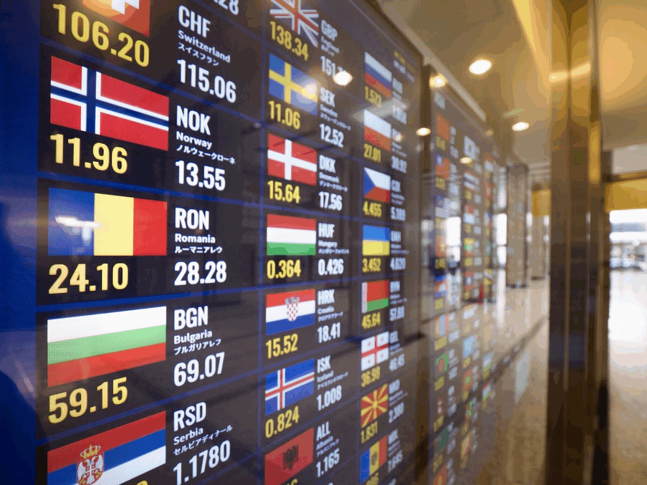 これらのカウンターは英語などの多言語対応がされている場合が多く、レートも明示されているため、安心して日本円に両替できます。