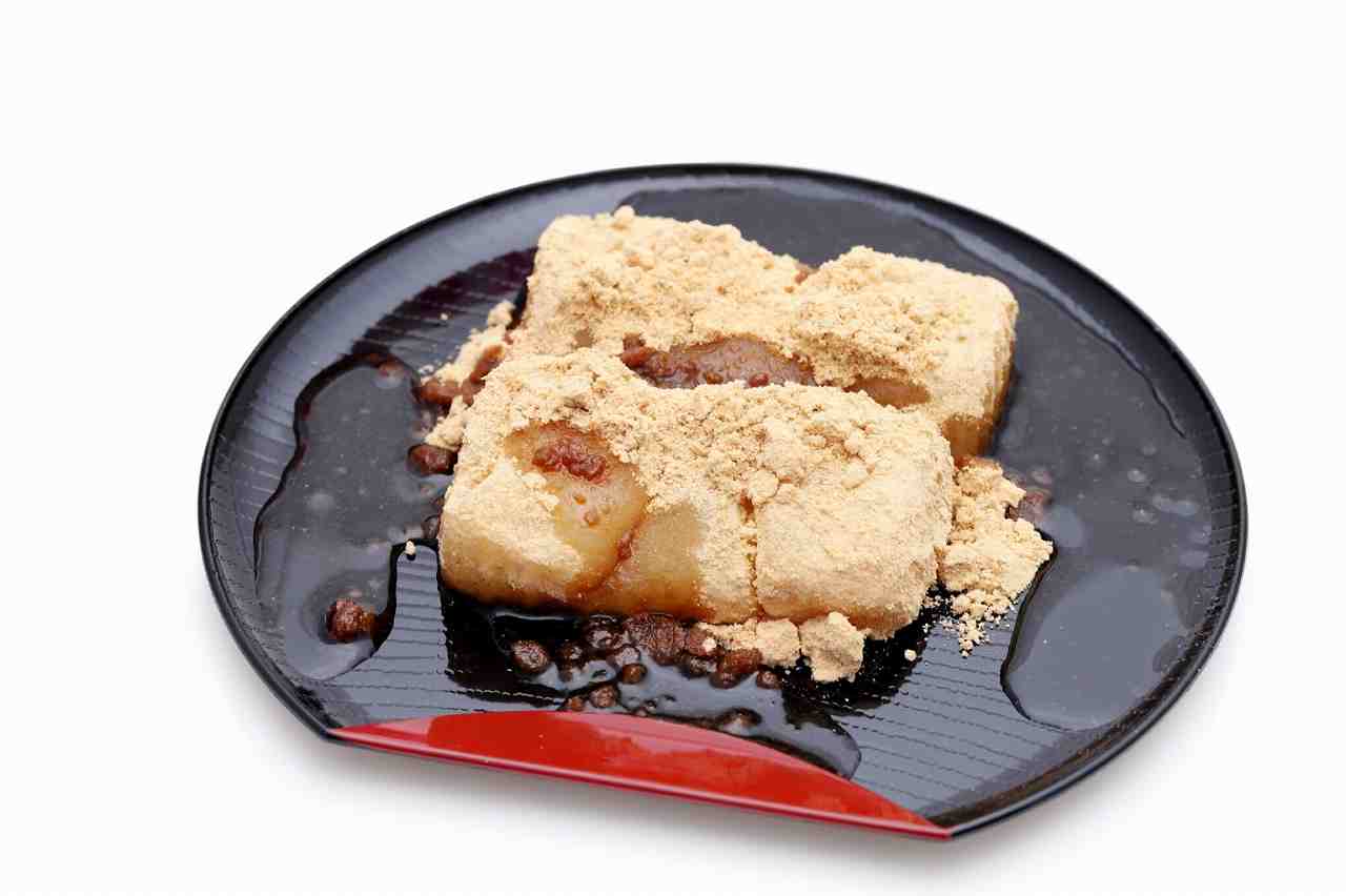 山梨県を代表する和菓子で、もち米をつきあげた餅と黒蜜を使ったあんこを組み合わせたお菓子です。