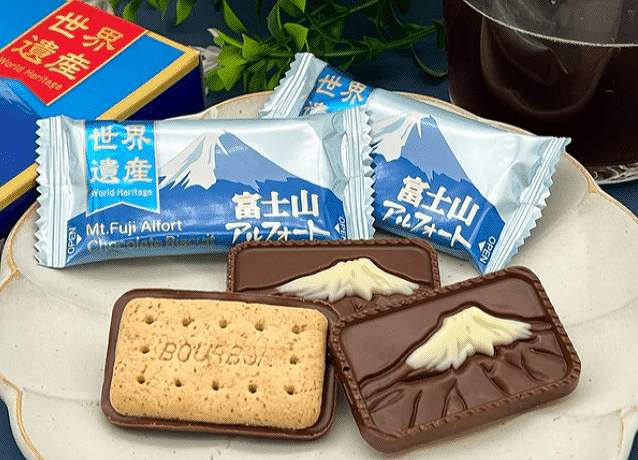アルフォートと言えば、帆を張った船のデザインが代名詞ですが、こちらはパッケージだけでなく、チョコレートも富士山デザイン!