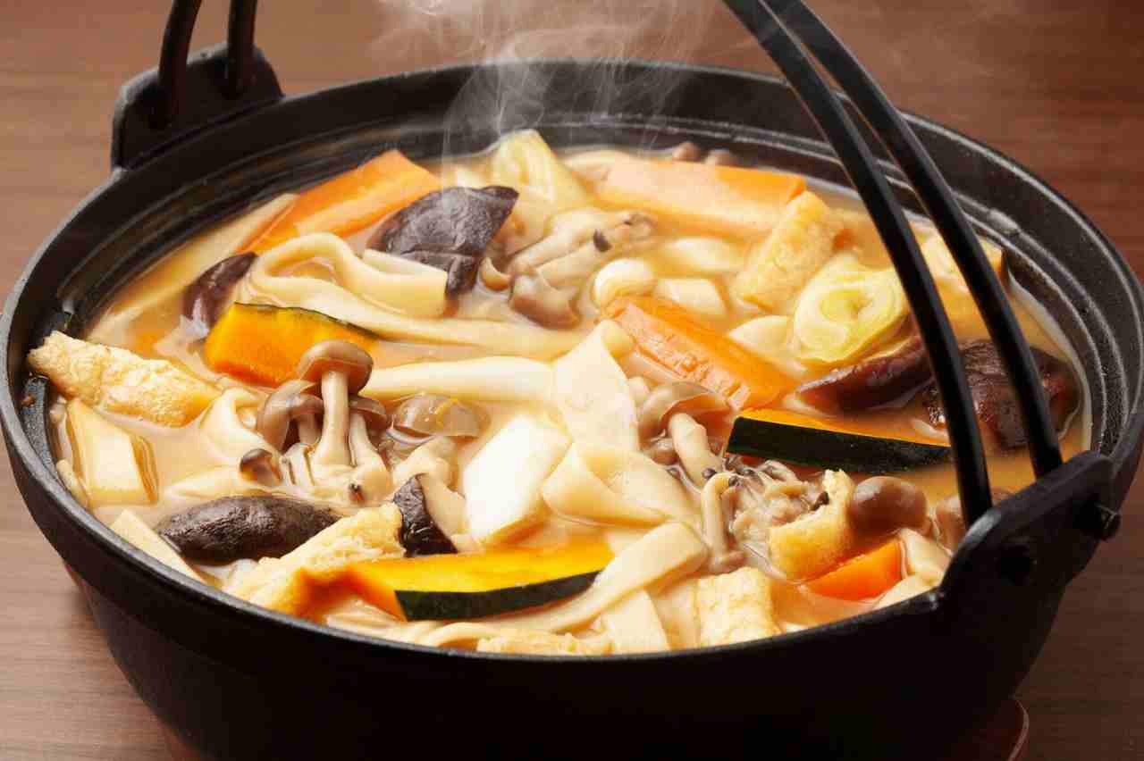 野菜やきのこ類、豆腐、肉類を味噌で味付けをしてグツグツと煮込みます。