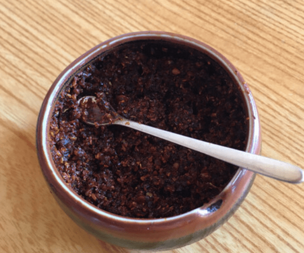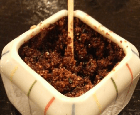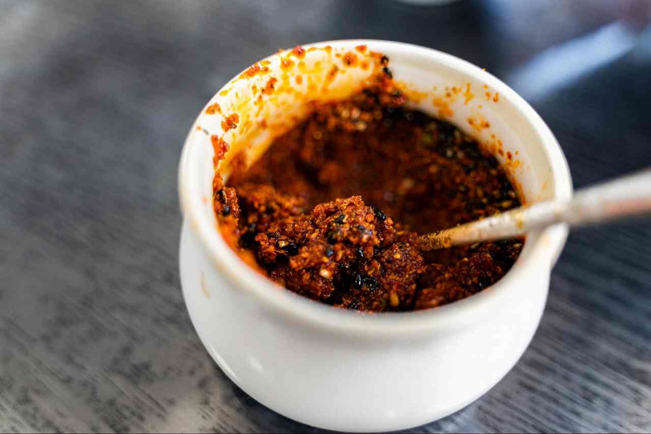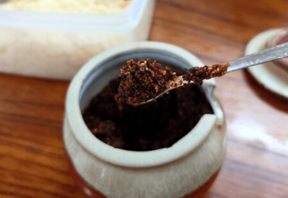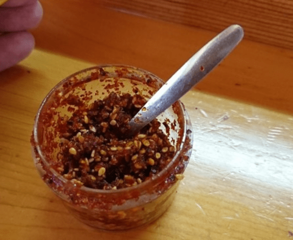 ・ごま、山椒、唐辛子などを油で炒めた「すりだね」が吉田のうどんの薬味。