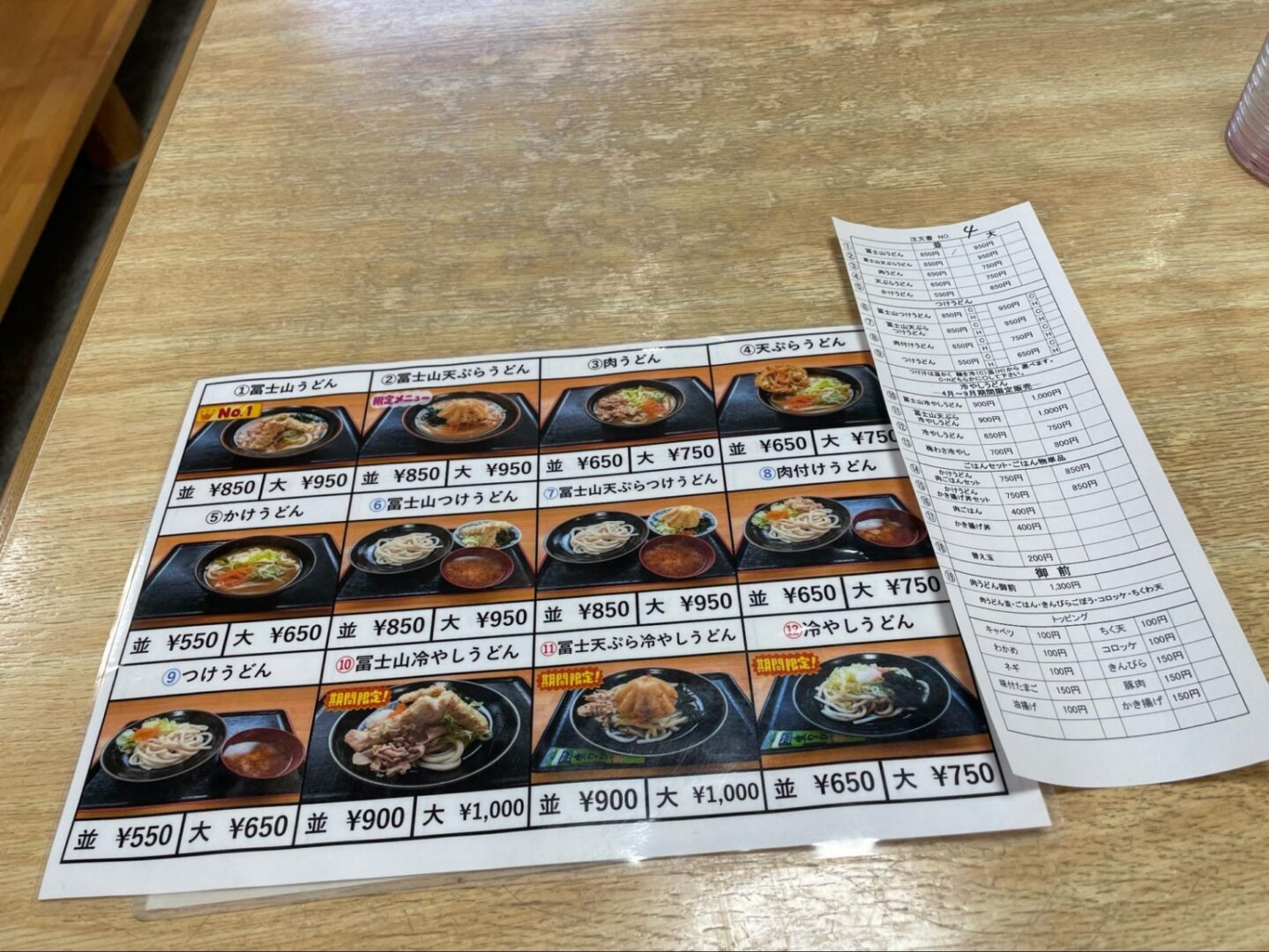 席に伝票やメモ、ペンが置かれている場合が多く、自分で注文を書いて店員さんに渡します。伝票が無い場合は、店員さんに直接オーダーを伝えます。メニューは席や壁に掲示されていますので、日本語が分からない場合は翻訳アプリを活用すると便利です。おすすめは「No.1」と記載された人気メニュー!うどんには、冷と温があるので確認してから注文しましょう。お水はセルフサービスのお店が多いので、自分自身で取りに行ってくださいね。