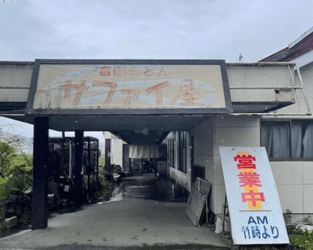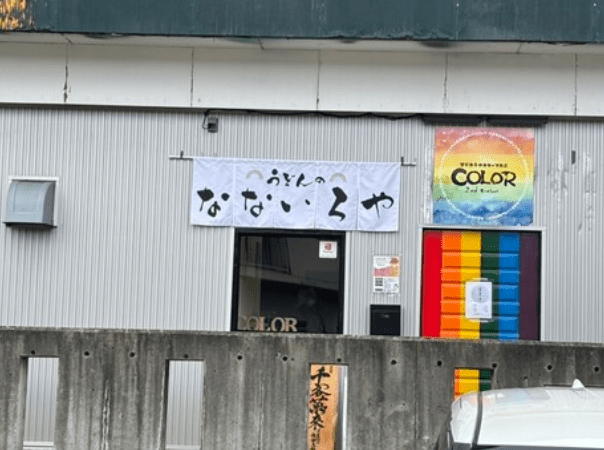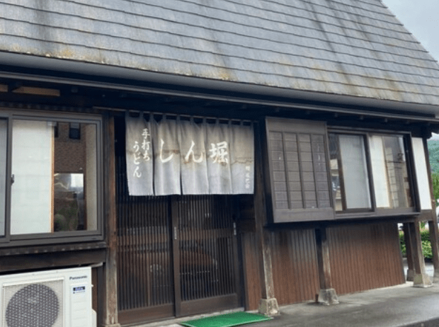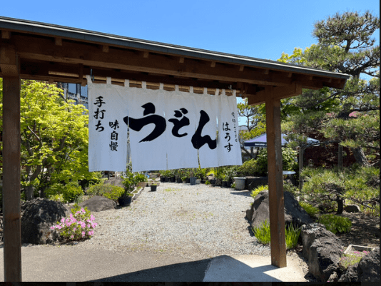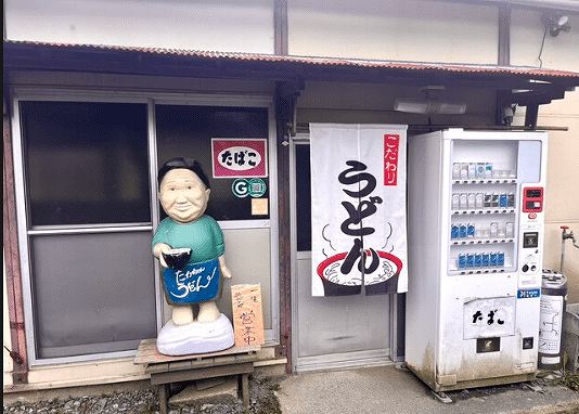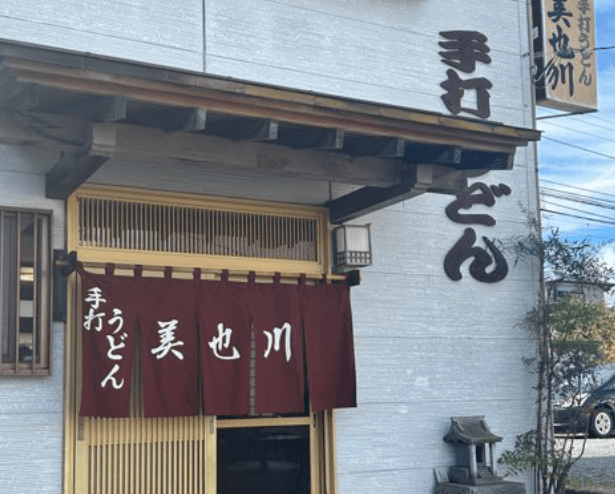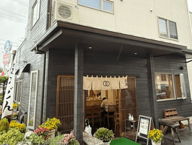 ② 各店舗で食べたうどん店の外観の写真を撮影します。