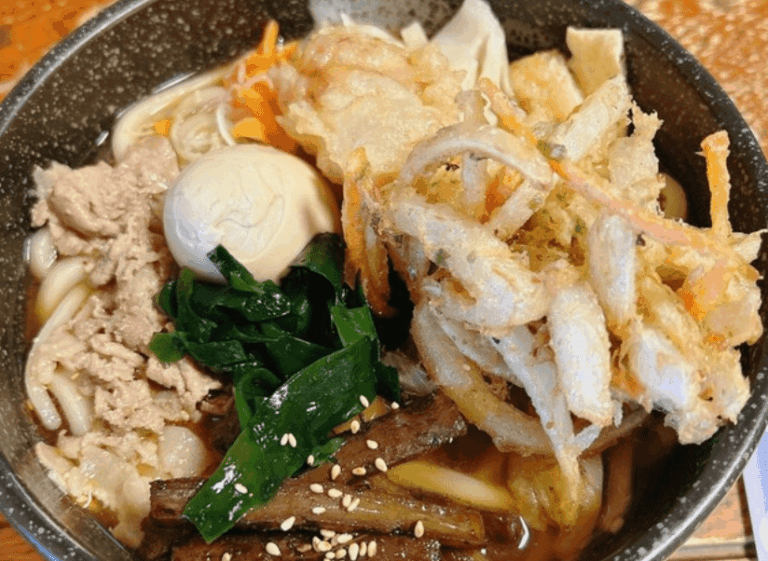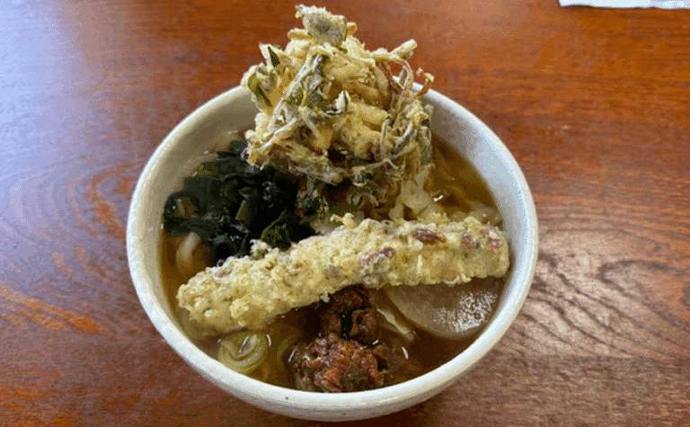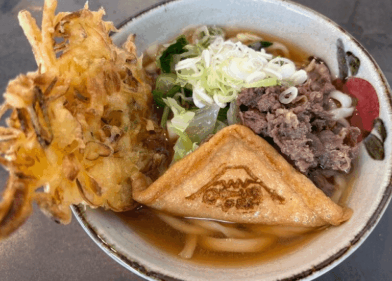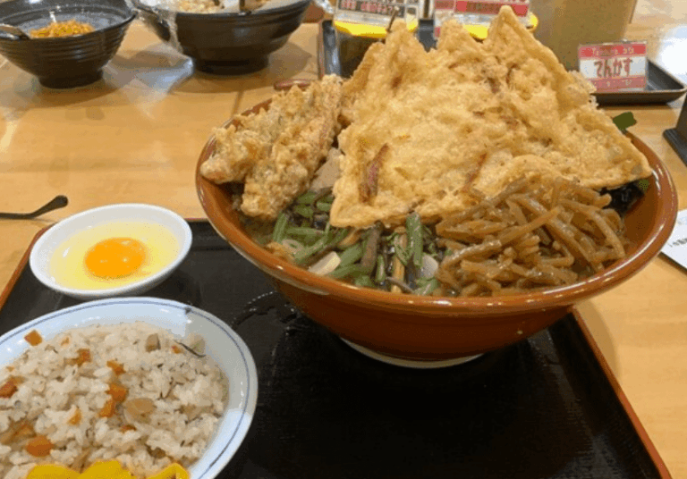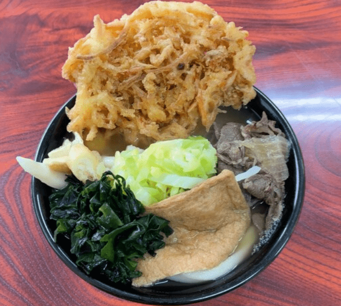 おすすめは、富士山の形をした大きなかき揚げに、豚肉や人参、わかめ、ネギがたっぷりのった「冨士山天ぷらうどん」!見た目も味も満足感たっぷりで、多くの人がやみつきになる一杯です。