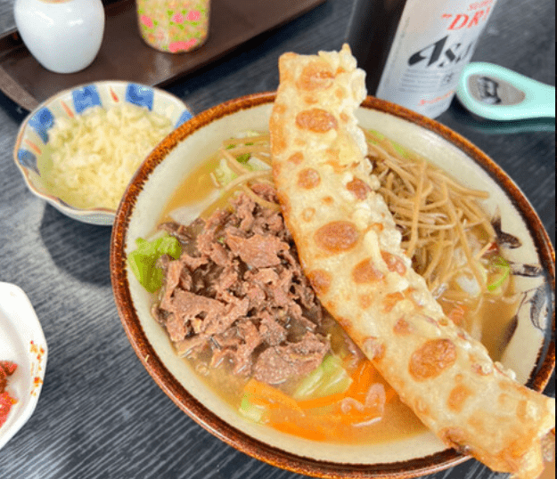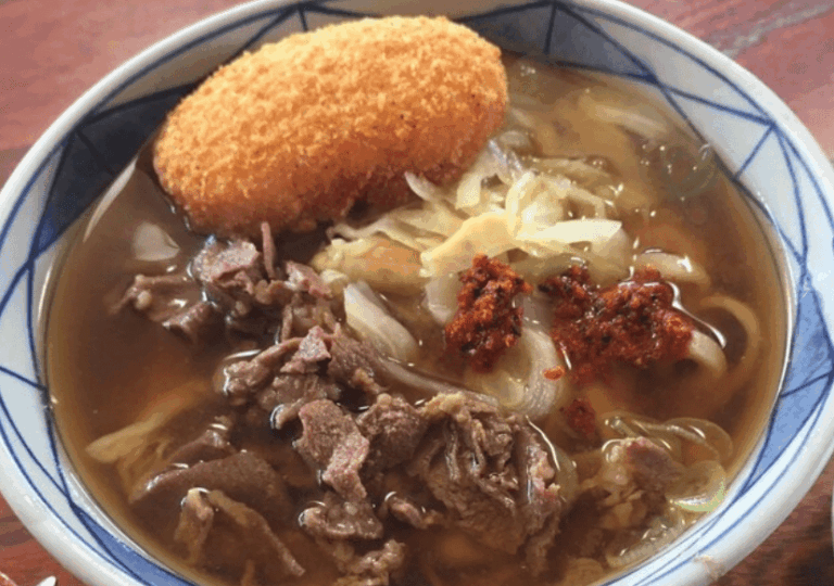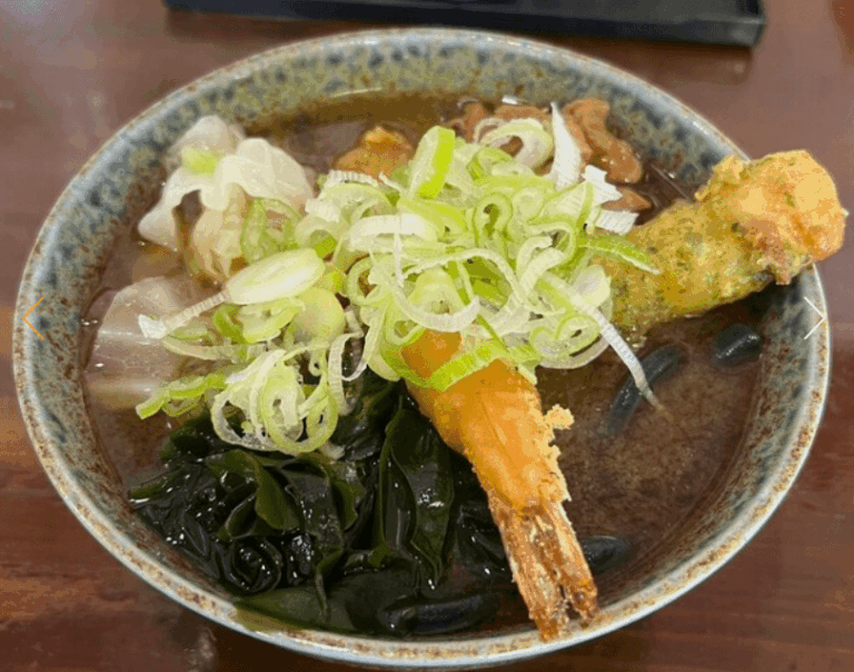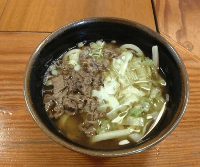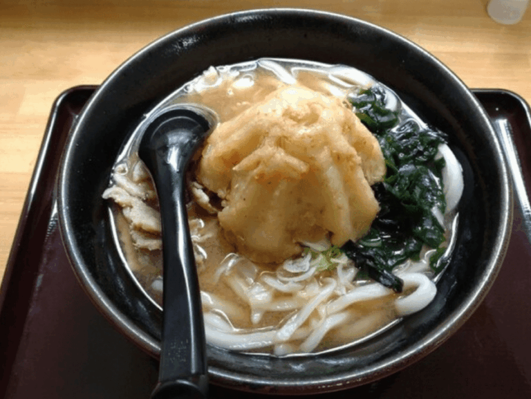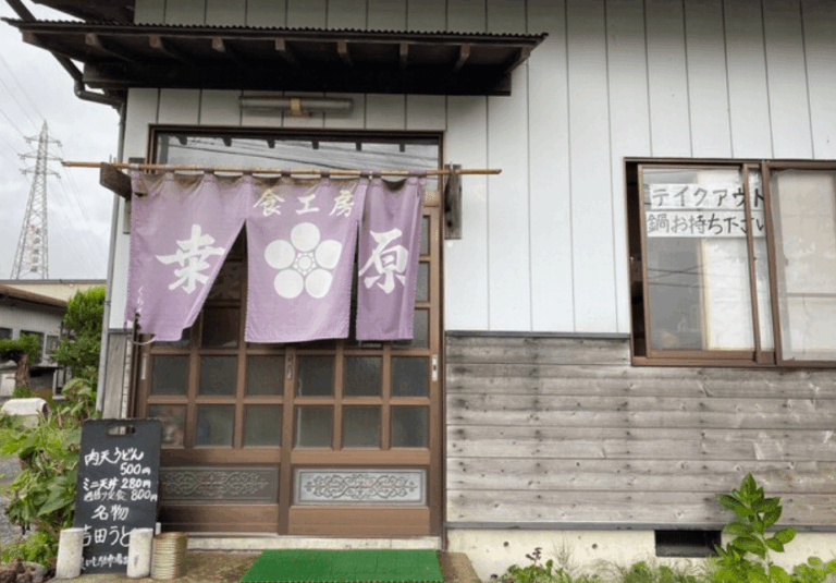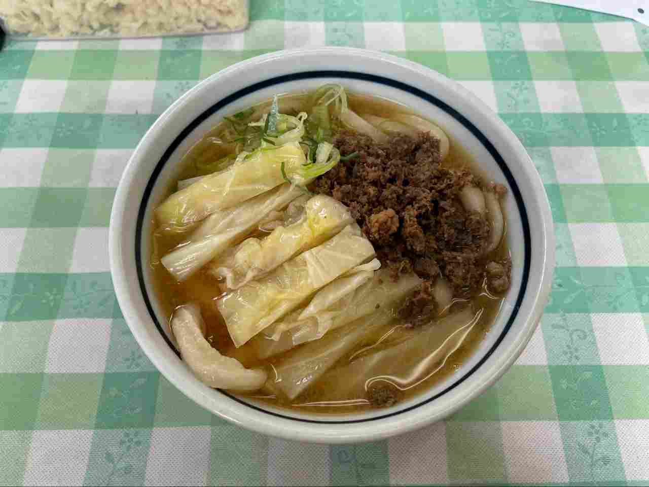 看板メニューの「あらきうどん」はボリューム満点で、地元の方や観光客からも大人気!もちもちとした食感のうどんとあっさり醤油出汁の組み合わせが抜群です。