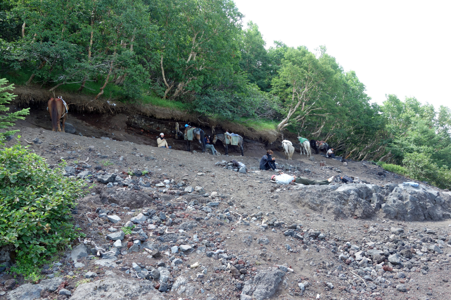 また、途中の獅子岩付近には、馬が待機しており、足を痛めた人や疲労が激しい人向けの下山サポートとして利用可能です。