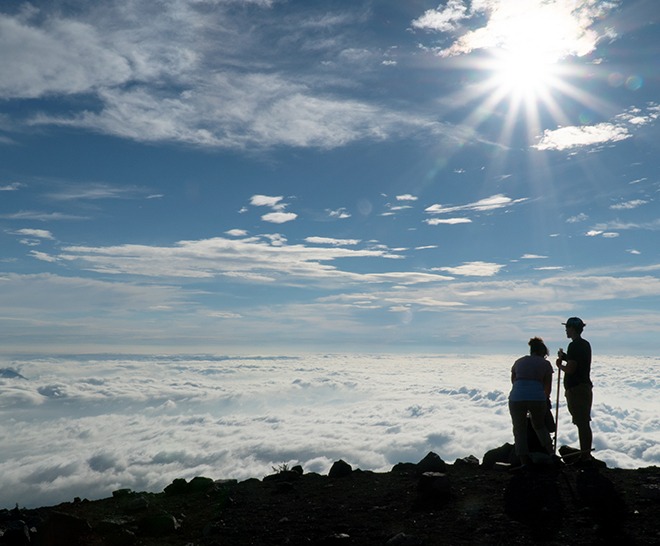 八合目に入ると、標高は3,000mを超え、酸素が一段と薄くなります。ここからは、一歩一歩ゆっくりとしたペースで進みましょう。