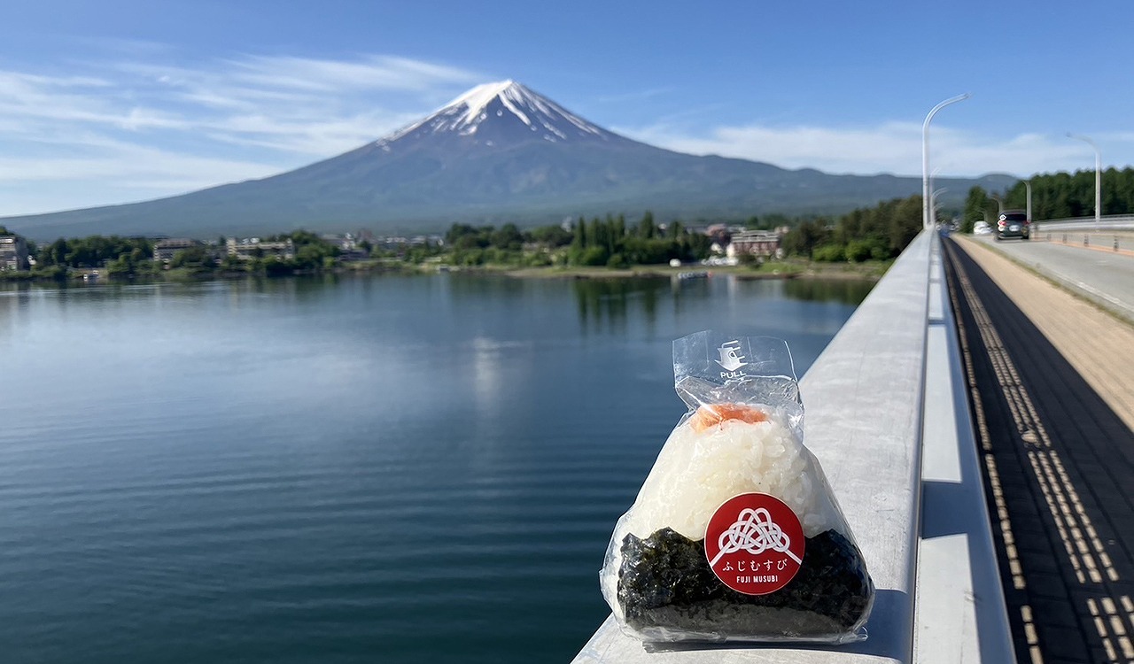 富士山麓の無農薬米と天然塩で握るおむすびが人気。甲州ワインビーフや富士の介など、地元食材を使った優しい味わいを湖畔で堪能できます。