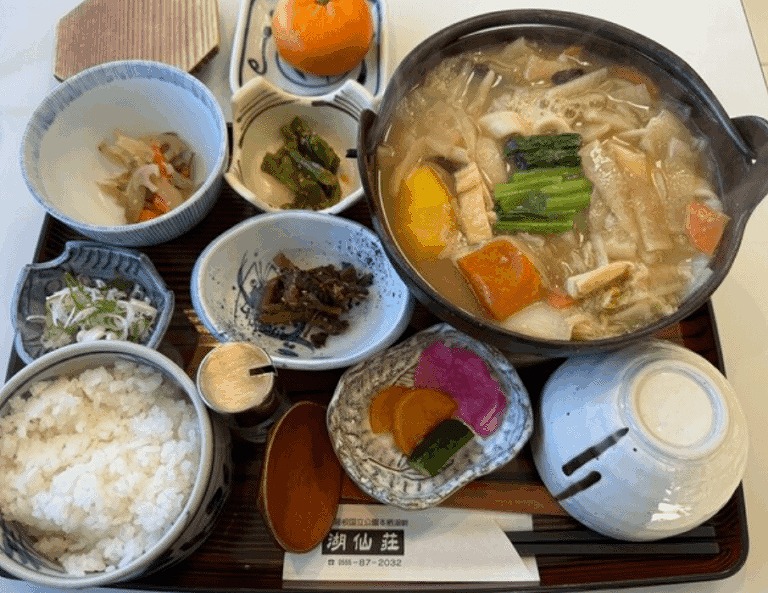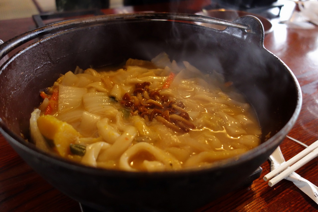 山梨名物「ほうとう」の名店。地元産のかぼちゃと季節の野菜がたっぷり入った味噌仕立てのスープは、コク深く優しい味わい。地元の人にも愛される名店で、旅の締めにぴったりの一杯です。